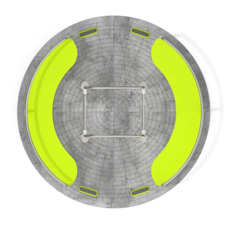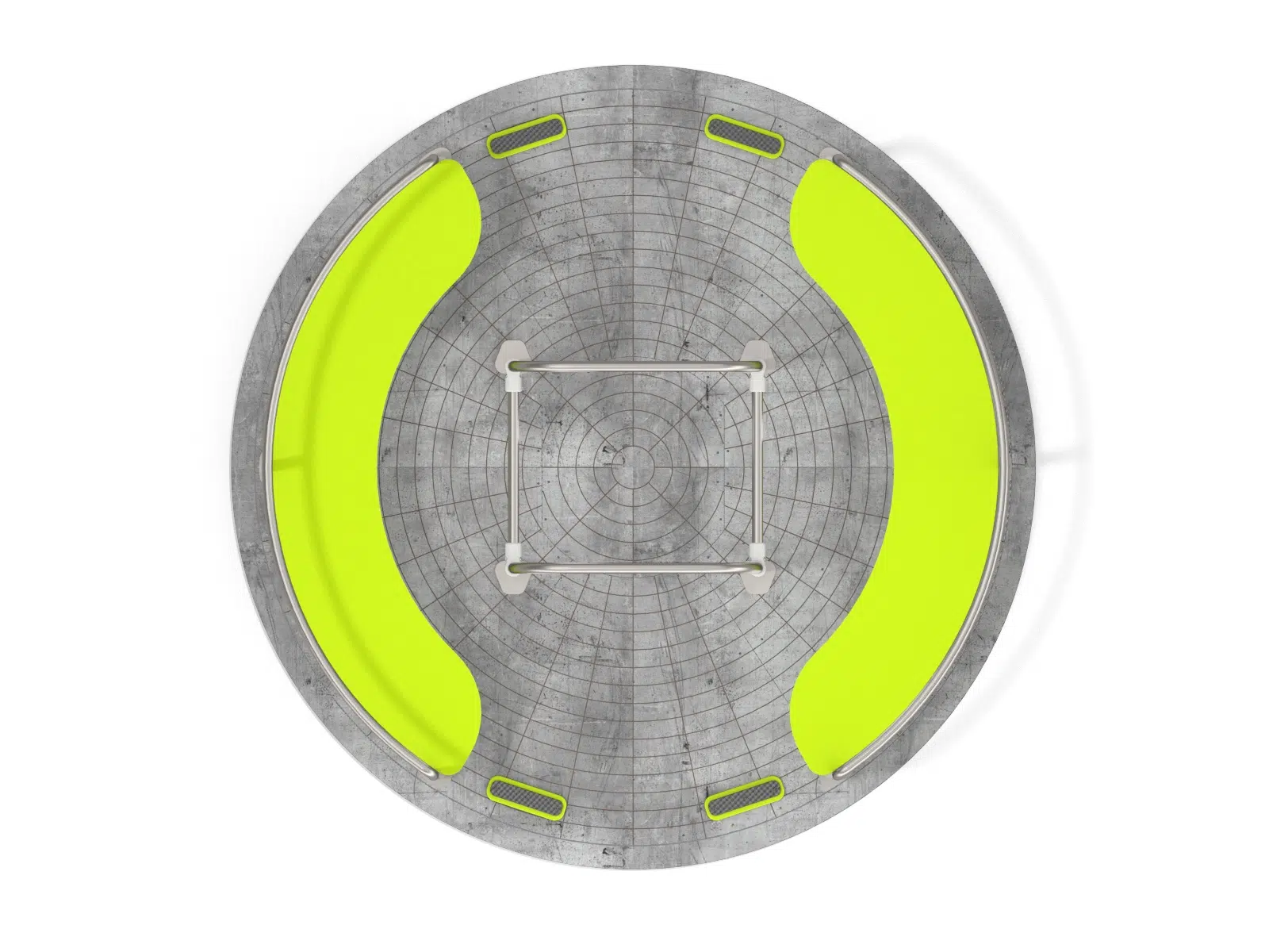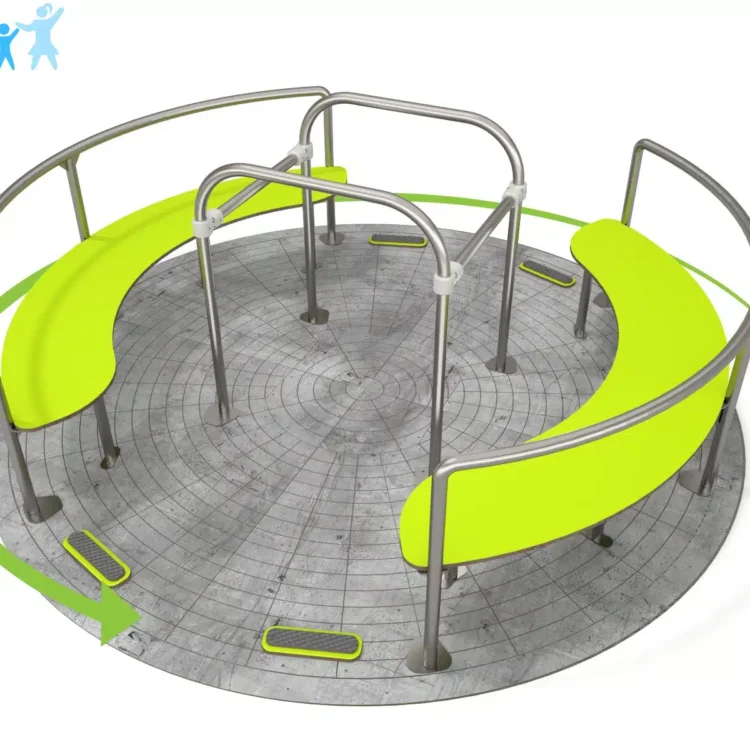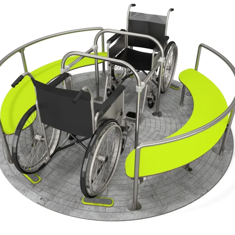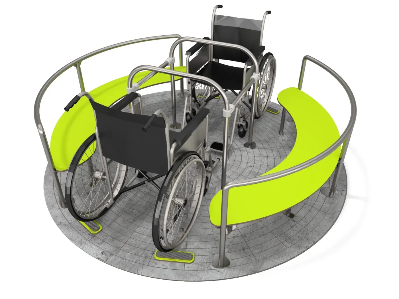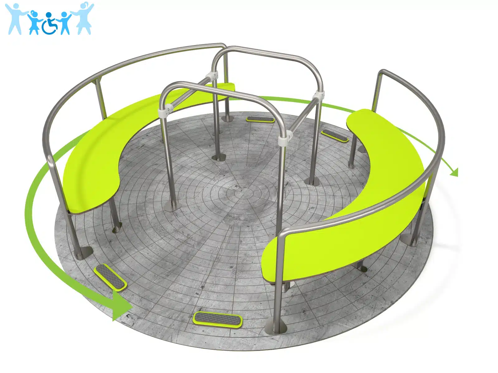 Inkluderende karusell for rullestolbrukere. Karusellen har plass til to rullestoler i tillegg til at ikke-rullestolbrukere kan benytte seg av setene.