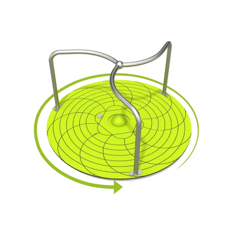Denne karusellen gir barn en aktiv og engasjerende opplevelse av rotasjon, der bevegelsen skapes gjennom lek og samarbeid. Den lave utformingen gjør apparatet lett tilgjengelig og gir god oversikt, mens håndtakene gir støtte og trygghet under bruk.